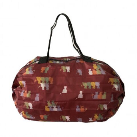 | ねこ柄のプリントが人気!アコーディオンのように生地が折り重なり、コンパクトなのに容量もたっぷりあるので普段のお買い物にも十分使えます。両サイドにゴムが付いていますので、使用しない時はクルクル丸めてゴムで留めるだけでコンパクトに収納できます。 |