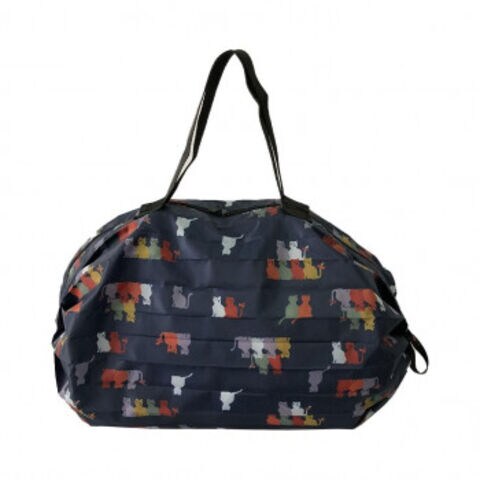 | ねこ柄のプリントが人気で撥水生地!アコーディオンのように生地が折り重なり素早くコンパクトなのに、容量もたっぷりあるので普段のお買い物にも十分使えます。両サイドにゴムが付いていますので使用しない時は、クルクル丸めてゴムで留めるだけでコンパクト収納できます。 |
