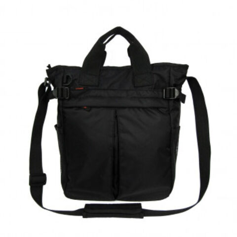 背面は面ファスナーのついたポケットがあります。両サイドのポケットには、500mlのペットボトルや折り畳み傘が収納可能。前面と内側にDカンがついており、ストラップやカラビナなど装着できます。ショルダーには、肩への負担やズレを軽減する為のパット(着脱可能)も付いています。持ち手もあるので、ちょっとした移動にも便利です。撥水加工を施したナイロン生地を使用。シンプルなデザインで、男女問わずお使いいただけます。