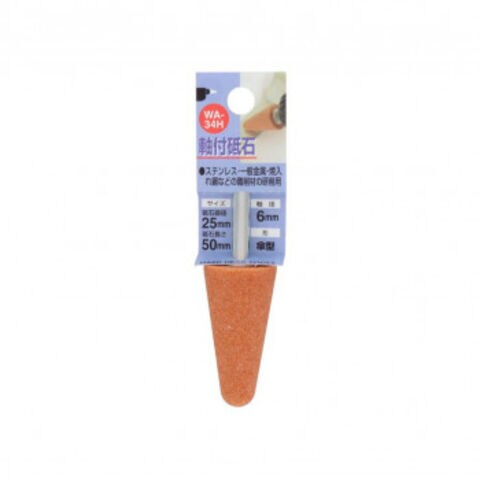 | サイズ | 砥石直径:25mm、砥石長さ:50mm、軸径:6mm 個装サイズ:10×5×5cm |