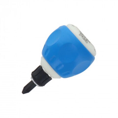 | ラチェット式の差替式スタビードライバーです。狭い箇所に便利です。42山のギアで作業がスムーズに行えます。プラス(+)側はNo.1、2対応。早廻しキャップ付きです。 |