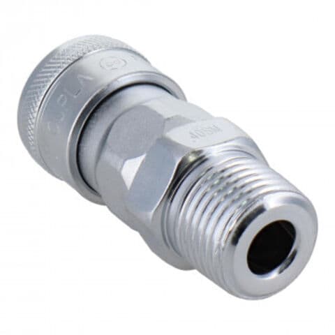 工場内の空気配管から空気工具のホース接続まで、汎用性に優れたカプラです。重要な構成部品には焼き入れを施し、強度を向上させました。特に耐摩耗、耐久性に優れています。
