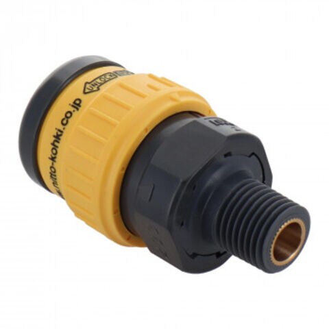 | 仕様 | 最高使用圧力:1.0MPa(10kgf/cm2) 耐圧力:1.5MPa(15kgf/cm2) 適用流体:空気 温度範囲:ー5~60度 保管温度:ー20~70度 バルブの構造:片路開閉型 流体の流れ方向:流体はソケット側からプラグ側に流します 最大締付トルク:30~40kgf、cm 相手側取り付けネジサイズ:RC1/4 |