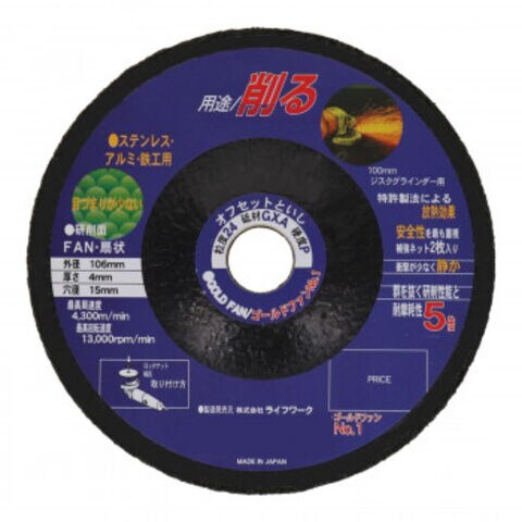 | 仕様 | 砥粒/粒度/硬度:GXA/24/P 最高周速度:4300m/min 最高使用回転数:13000rpm |