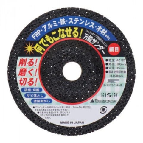 | FRP・アルミ・鉄・ステンレス・木材の切断・研削・磨き、サビ落とし、塗装はがしに。メッシュタイプで目詰まりしにくい。 |
