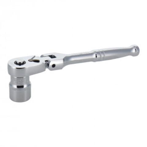 | 送り角3.3度・ギア数108枚と細かいので、狭い個所での作業も可能です。スリム・コンパクトヘッド仕様。プッシュリリース式。フレックス機構により、ソケットと組み合わせて複雑な箇所でも使用ができる。 |