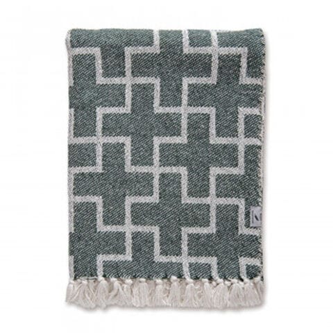| シンプルなリピートデザインで、フリンジ付きのスロー。インテリアにスッと馴染む、MUKTの柄。 |