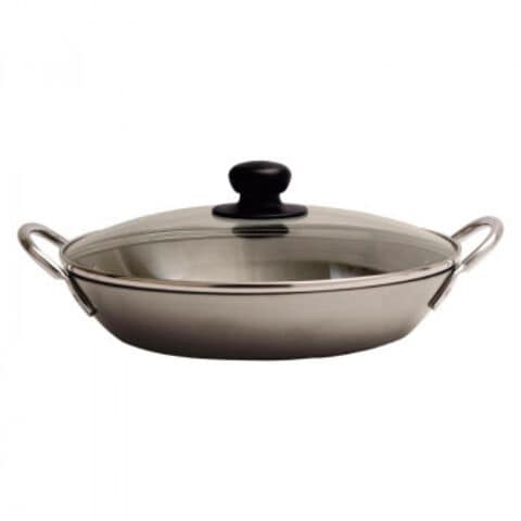 | 予熱したり、強火を扱うハードな調理に最適の鉄製パエリア鍋です。一般のパエリア鍋よりも深めで調理が楽です。そのまま卓上にも出せ、調理、蒸らしに便利なガラス蓋付き。両手フライパンとして、焼物などにもお使い頂けます。 ※パッケージデザインや内容が変更になる場合がございます。予めご了承ください。 |