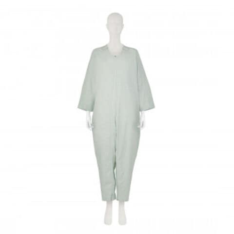 | ご本人では開けにくいアイデアホックを使用した介護用つなぎねまき、アイデアホックが表から見えないデザインを採用。腕に袖を通しにくい方に最適。おむつ交換がしやすいように股ファスナーを配置。アイデアホックを足元にまとめることで、ホックに触れにくくしました。 外し方:ホックの裏側に指を添え、あまぶたの下のホックの上に指を入れ込み、爪を立てるようにして中央部を押してください「パチッ」と音がして外れます。 閉じ方:あまぶたの上からホックのフチを両手で「パチッ」と音がするまで押します。 |