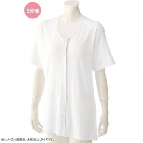 ケアファッション 3分袖大寸ワンタッチシャツ(婦人) ホワイト 4L 3811908