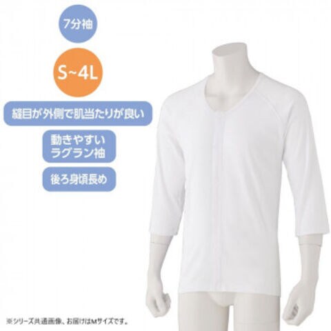 ケアファッション 7分袖ワンタッチシャツ(2枚組)(紳士) ホワイト M 9800201