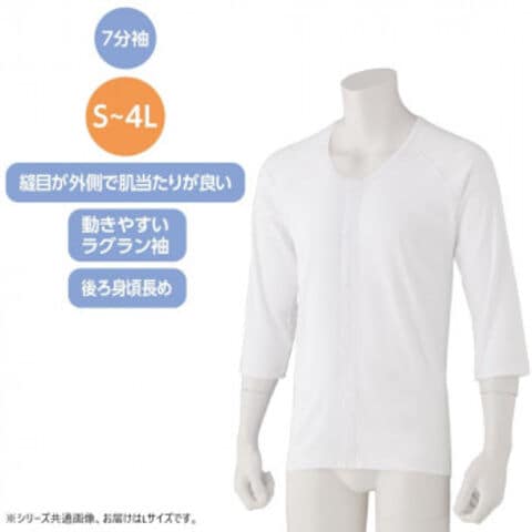 ケアファッション 7分袖ワンタッチシャツ(2枚組)(紳士) ホワイト L 9800202