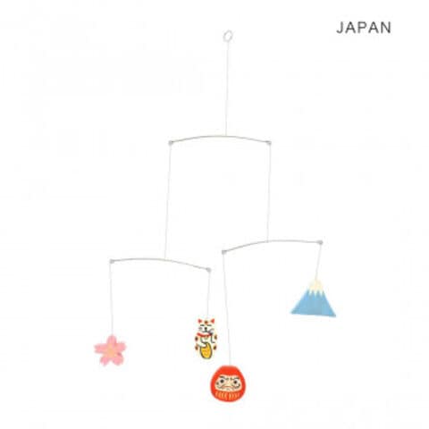 | 立体的なオブジェがついたモビールです。日本モチーフの可愛いデザイン!天井にぶら下げるとゆらゆら動いて楽しめます! |