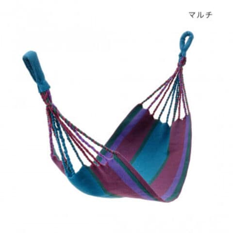 | 色鮮やかなストライプがお部屋のアクセントに。環境に優しいリサイクルコットンで作られたミニハンモックです。ちょっとした小物を乗せてハンギング収納にも。 |