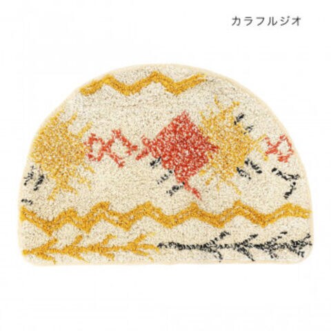 | モロッコの先住民の方々が織る絨毯をイメージして作りました。半円状の形状は、ドアなどの出入口にぴったりなサイズ!ベッドサイドに敷いてもオシャレ!世界の織物やファブリックの柄をモチーフに!表現豊かなラグはさっと敷けばお部屋に異国のエッセンスが加わって、旅する気分になれるようなマットです。 |