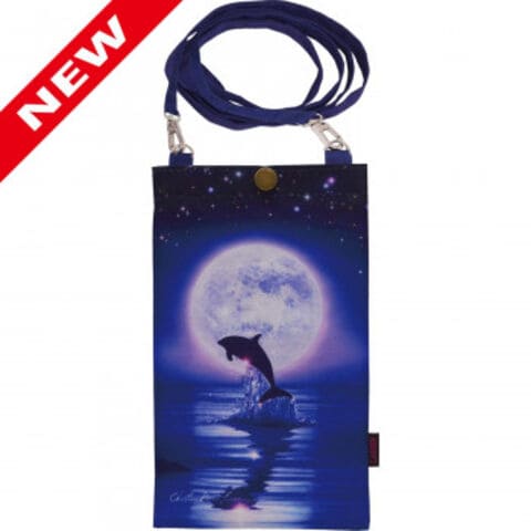 | スマホを入れて上部の金属ボタンで留めることができます。裏表に同じ柄がプリントされています。ゆったりサイズなので、大きめのスマホも収納可能! |