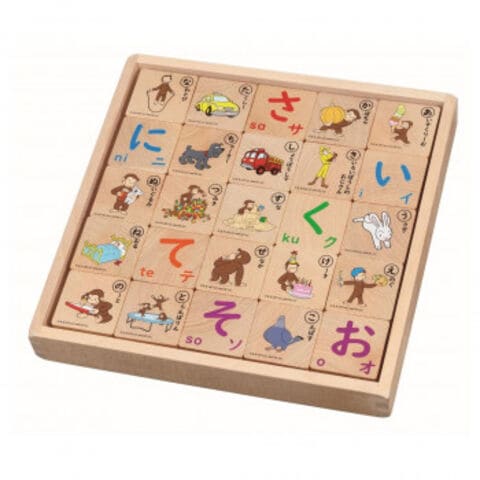 | ジョージと一緒にひらがなを学びましょう。ピースにはいろんなコスチュームを着たジョージやカラフルなイラストが描かれています。 ※画像はサンプルです。仕様変更がある場合がございます。 |