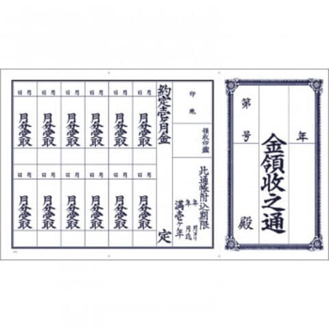 | 「金領収之通(1年用)」は月極めの契約などで料金を領収したことを証明する書面としてお使いいただける事務用品です。3つ折にして使える・レトロなデザインが特徴です。賃貸経営(貸し家・賃貸マンション)や事務に最適です。 ※3つ折にして使用します。 |
