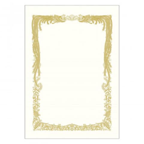| 鳳凰の美しい輝きを発色の良い金インク印刷で表現した賞状です。オフセット印刷や手書きに対応しています。温かみのある生成りのケント紙は文字がよく馴染み格調高く見えます。 ※用紙サイズは、JIS規格のサイズではありません。 ※白色度:74~76%以下です。 |