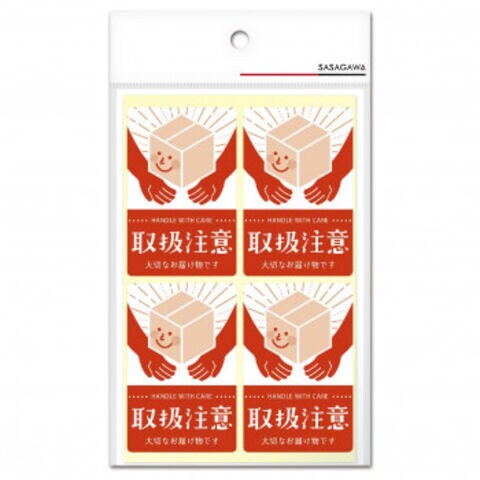 | 運送業者の方へ取り扱いの注意喚起に役立つ荷札シールです。荷物に貼るだけで、送り主の「想い」を伝えることができます。 |