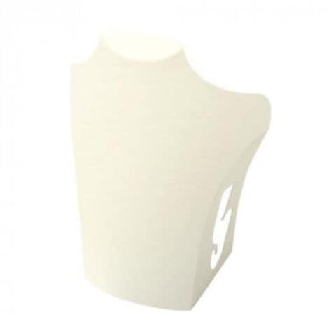 デコルテがイメージしやすい立体感のある美しい紙製トルソー。ネックレスが綺麗に展示できる紙製什器です。紙とは思えない立体感と質感。まるで首からネックレスをかけているような美しいフォルム。質感の良い紙を使用しているので、見栄えも良くアクセサリーにとてもマッチします。屋号をいれたりデコレーションをして素敵にお使いいただけます。