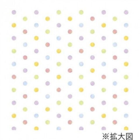 | カラフルな水玉柄の包装紙です。水彩タッチで優しい雰囲気の水玉を、発色のいいコート紙に印刷しました。ベビー用品に好まれる柄ですが、年齢や業種を問わずお使いいただけます。一般的な半才サイズです。 |