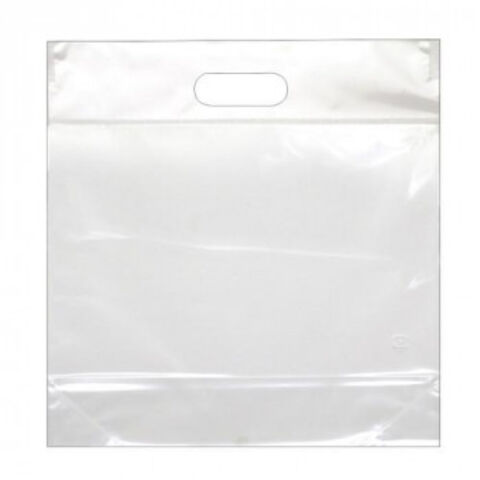 | 底にマチのあるスタンディングバッグです。持ち運びに便利な持ち手付き。透明なので中身が透けて判別しやすいタイプになっています。青果の陳列やノベルティセットの販売に便利です。 |