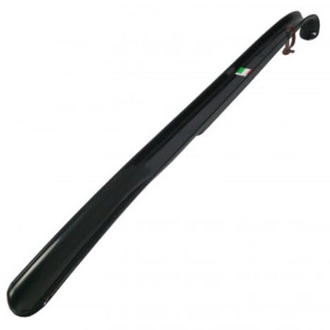 | お洒落な黒色のプラスチック製シューホーンです。長さ60cmですので、膝を曲げずに使用できます。 |