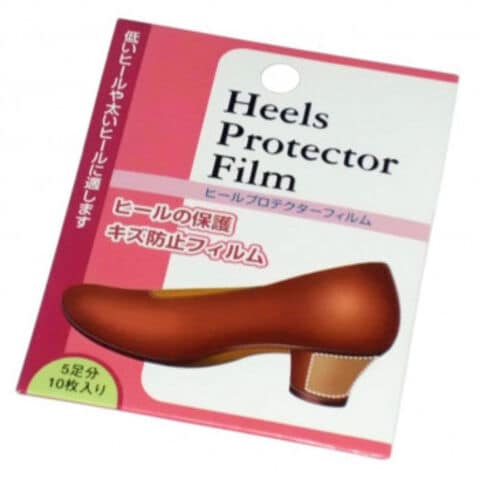 | パンプスやサンダル等のヒール部分に貼り付けることによりキズや汚れから守るフィルムです。 |