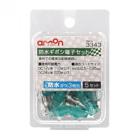 | セット内容 | ・ギボシ端子(オス)×5 ・ギボシ端子(メス)×5 ・防水オススリーブ×5 ・防水メススリーブ×5 |