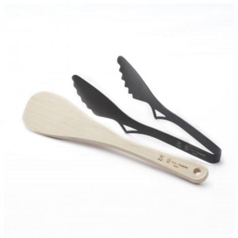 | 自然のぬくもりを感じる木べらと、スタイリッシュなトングのセットです。 |