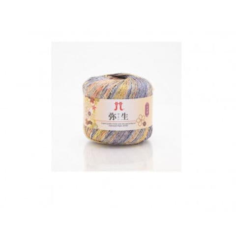 和紙を使って軽くさらっとした質感に仕上げた合太ファンシーヤーン。単糸をかすり染めにして糸に仕立てた上から、さらにかすり染めを施し、複雑に絡み合う深みのある色を表現。「伝統的な古典振袖」をイメージしました。