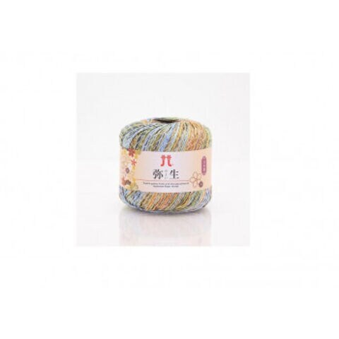 和紙を使って軽くさらっとした質感に仕上げた合太ファンシーヤーン。単糸をかすり染めにして糸に仕立てた上から、さらにかすり染めを施し、複雑に絡み合う深みのある色を表現。「伝統的な古典振袖」をイメージしました。
