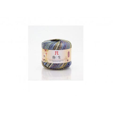| 和紙を使って軽くさらっとした質感に仕上げた合太ファンシーヤーン。単糸をかすり染めにして糸に仕立てた上から、さらにかすり染めを施し、複雑に絡み合う深みのある色を表現。「伝統的な古典振袖」をイメージしました。 |