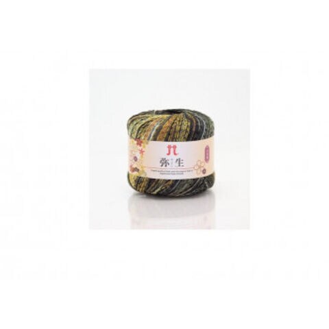 | 和紙を使って軽くさらっとした質感に仕上げた合太ファンシーヤーン。単糸をかすり染めにして糸に仕立てた上から、さらにかすり染めを施し、複雑に絡み合う深みのある色を表現。「伝統的な古典振袖」をイメージしました。 |