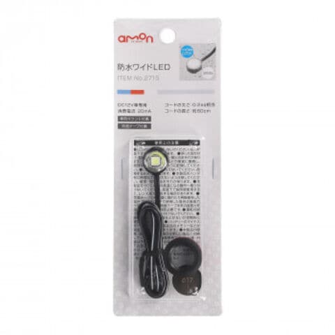 ※LED本体部分は防水ですが、コード先端部分は防水仕様ではありません。車外に取り付ける場合は、防水用の端子などを使用し、接続部の防水処理をおこなってください。