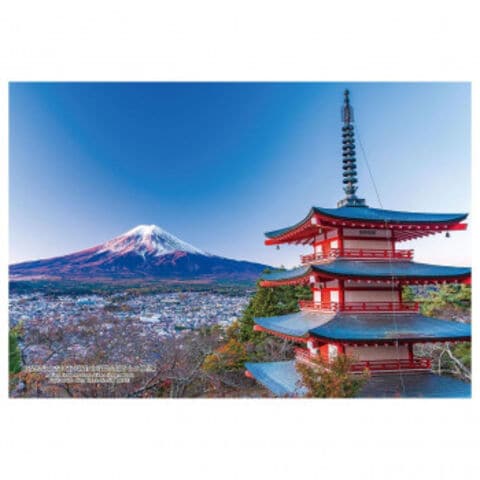 | その土地にかかわる風景や物なども含めて有名なものをパズルにした、シリーズ「日本の都市」。新倉山浅間公園は、富士山の北側のふもと富士吉田市の新倉山中腹にあり、街並みと、すそ野を大きく広げた雄大な富士山の姿を一望することができます。 |
