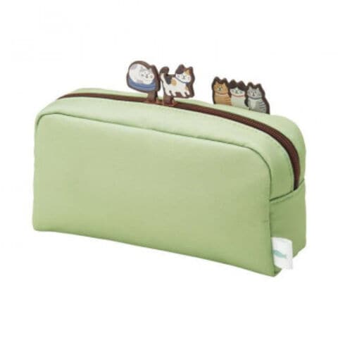 | 文具小物入れに。コスメポーチとして。内側には仕切りポケット付き。ネコのあるあるシーンを再現した「にゃんシーン」シリーズ。家で飼われているネコに見られる「ダンボール箱を見つけたらダイブせずにはいられない」、「動くおもちゃに思わず反応してしまう」などのあるあるシーンをネコ型のファスナートップで表現しました。 ※収容本数はペンの種類によって変わります。 |