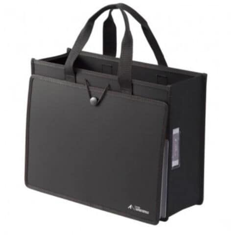| クリヤーホルダーや書類収納に便利なジャバラポケット(1仕切)付き。バッグの両サイドにはそれぞれ、ボトルが入るメッシュポケットとタイトル記入ができる見出し付き。底板を抜き取るとスリムに持ち運びできます。 |
