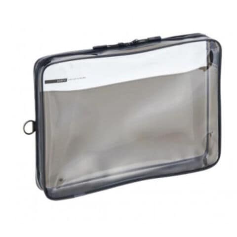 | 吊り下げできるリング付き。小物を入れられる背面内ポケット付き。大きく開いて開け閉めしやすいダブルファスナー。スマートフォンを入れたままタッチ操作できます。A4クリヤーホルダーや文具小物など。大きく開くのでリュックのバッグインバッグとしても。 |