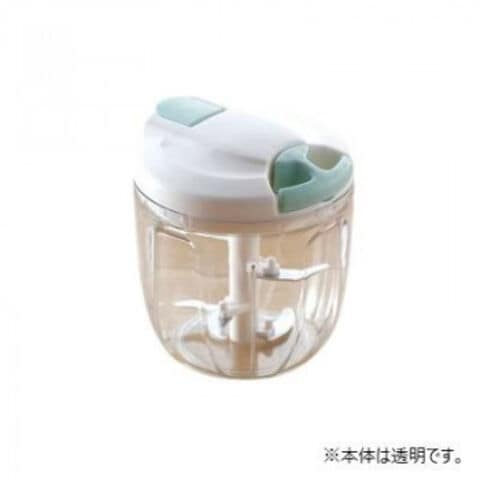 | 素材・材質 | フタ部分・ハンドル・回転刃芯部分:ポリプロピレン(耐熱温度:100度、耐冷温度:-20度)、ヒモ:ナイロン、ヒモ口部分:銅、容器:ポリスチレン(耐熱温度:80度、耐冷温度:-20度)、滑り止め:シリコン、刃:ステンレス刃物鋼 |