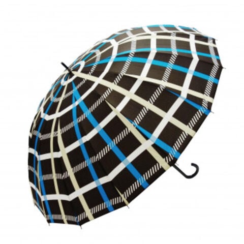 骨が多くて風に強く、丈夫な設計の長傘。高級感のある合皮手元もポイントです。