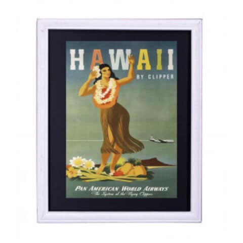 ウッドフレームに納まったレトロなハワイデザインのポスターです。お部屋をアロハな気分にさせてくれそう。