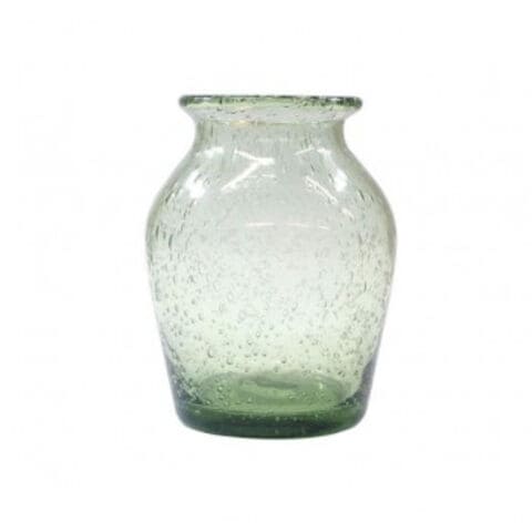 手吹きバブルガラスフラワーベース ポット オリーブ IN055183