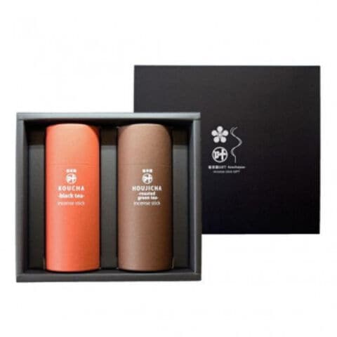 | 茶葉からできる「紅茶」「ほうじ茶」の香りのお線香をオシャレなパッケージに仕立てました。センスの良い贈り物で気持ちが伝わります。 |