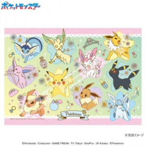 ピカチュウ、イーブイ、の進化系たちが大集合したかわいいイラストのジグソーパズルです。パズル初心者の方やお子様でも、程よい難易度で組みやすいサイズ感です。