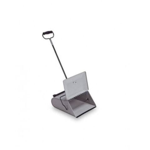 | 床面にフィットするゴムや、ホーキについたゴミを取るクシのついた、使いやすい自立タイプのチリトリです。 |