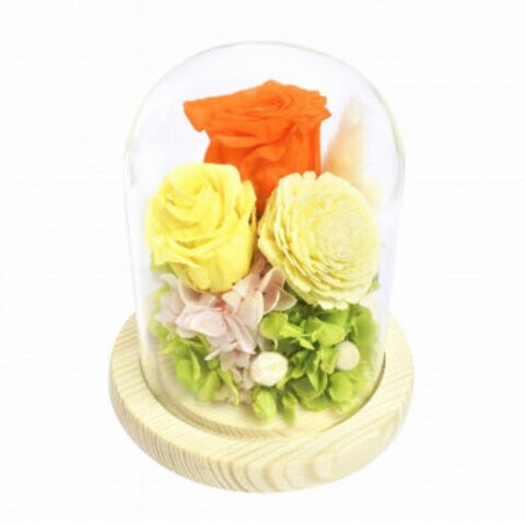ガラスドームアレンジメント ソレイユ オレンジ+イエロー B14835