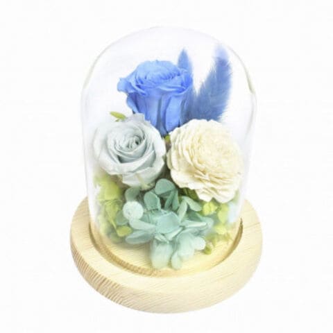 ガラスドームアレンジメント ソレイユ ターコイズ+ブルー B14853