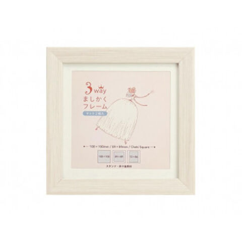 | 2枚の付属マットで飾り方3通り。正方形がかわいいフォトフレームです。 ※はめ込みタイプとなっています。マットにかからない為、面材で押さえる形になります。面材を外して使用する場合はフィルムをテープ等で固定する必要があります。 |
